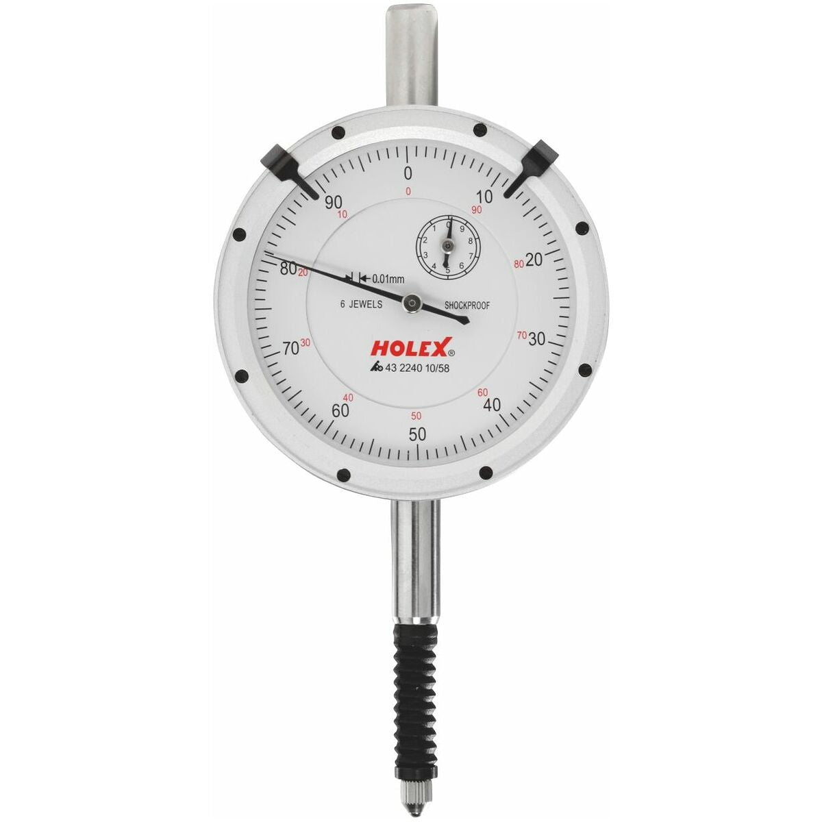 Dial indicators with protection against splashed water, oil and dirt. Contact point on plunger spindle sealed by rubber bellows, sealed by protective sleeve at the top. Back wall sealed, glass and outer ring tightly screwed. Clamping shank ⌀ 8 mm h6.