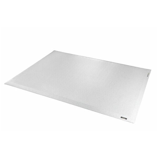 Industrial workplace mat for medium to heavy-duty requirements. The ergonomic rubber mat is suitable for dry and wet walking and standing workplaces. The mat surface has an optimally coordinated pivot point and very good slip resistance and position stability. Bevelled edges on all sides to avoid the risk of stumbling. Very easy-to-clean surface with light-reflecting properties.