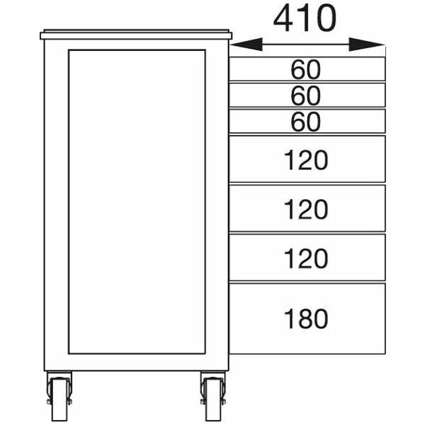 Drawer front height: 60; 60; 60; 120; 120; 120; 180 mm